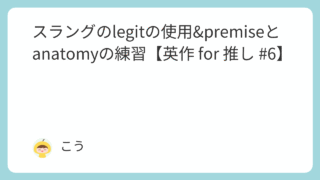 スラングのlegitの使用&premiseとanatomyの練習【英作 for 推し #6 】
