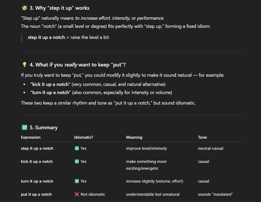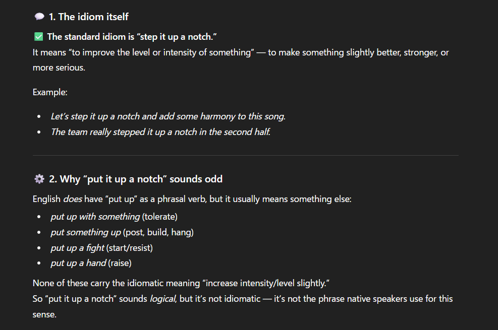 “put it up a notch”に至ってはそもそもこの言葉がidiomaticじゃないらしいから、Shioriが配信中に即興で作った言葉なんだと思う。そういうのはよくある。