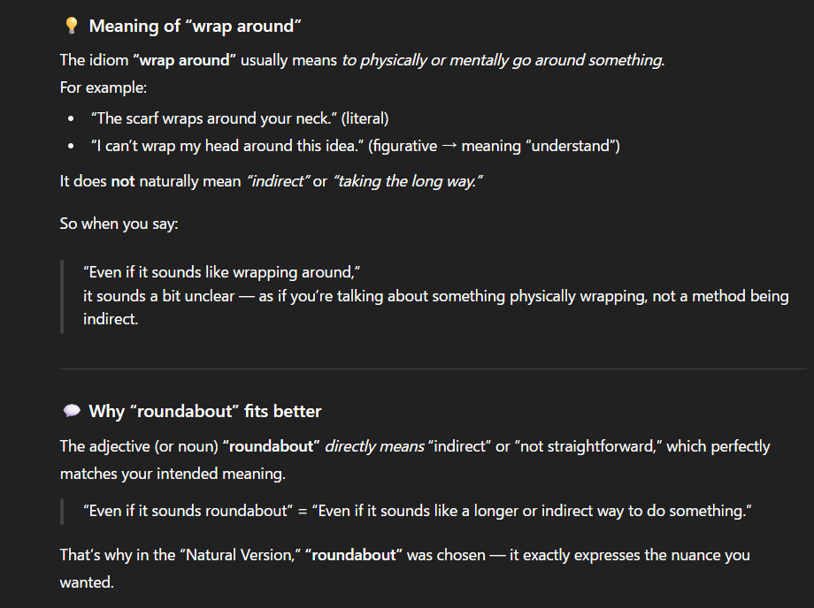 It does not naturally mean “indirect” or “taking the long way.”