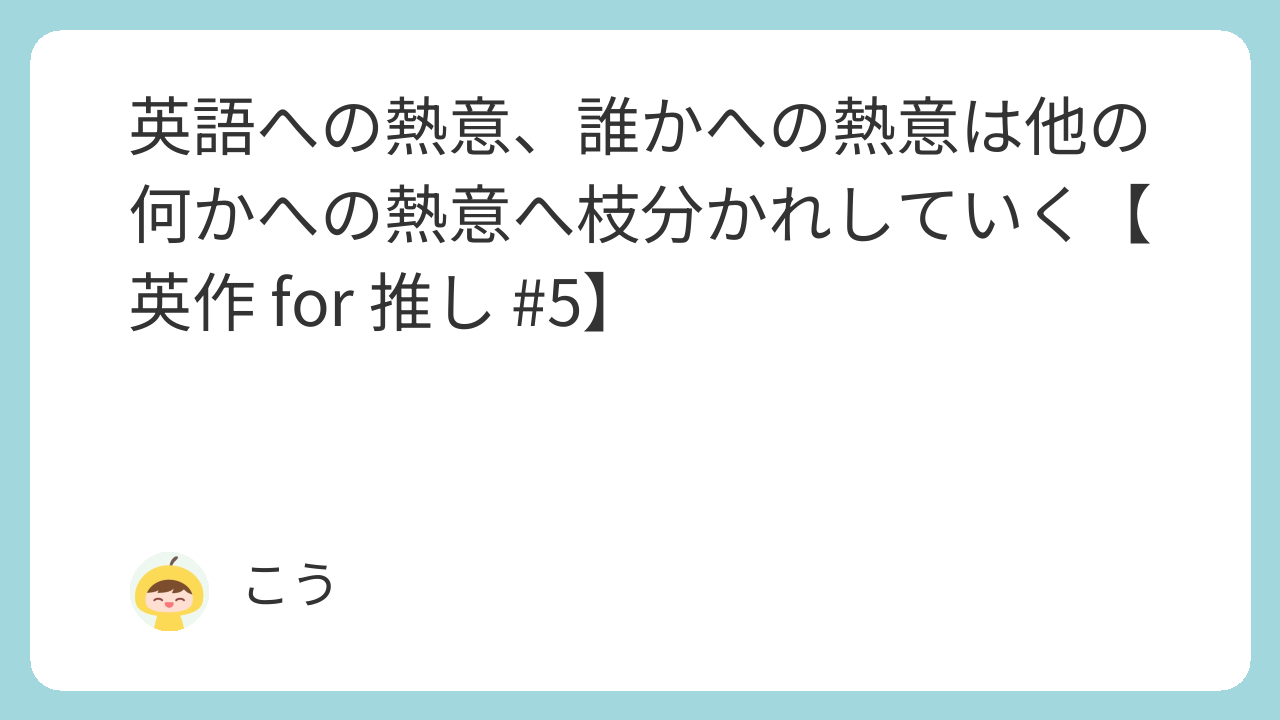 今回の英語は、英語に熱意を向け、その熱意が言語そのものやVTuberみたいに他のものにも移っていった自分の体験について表現しようとして書いた。