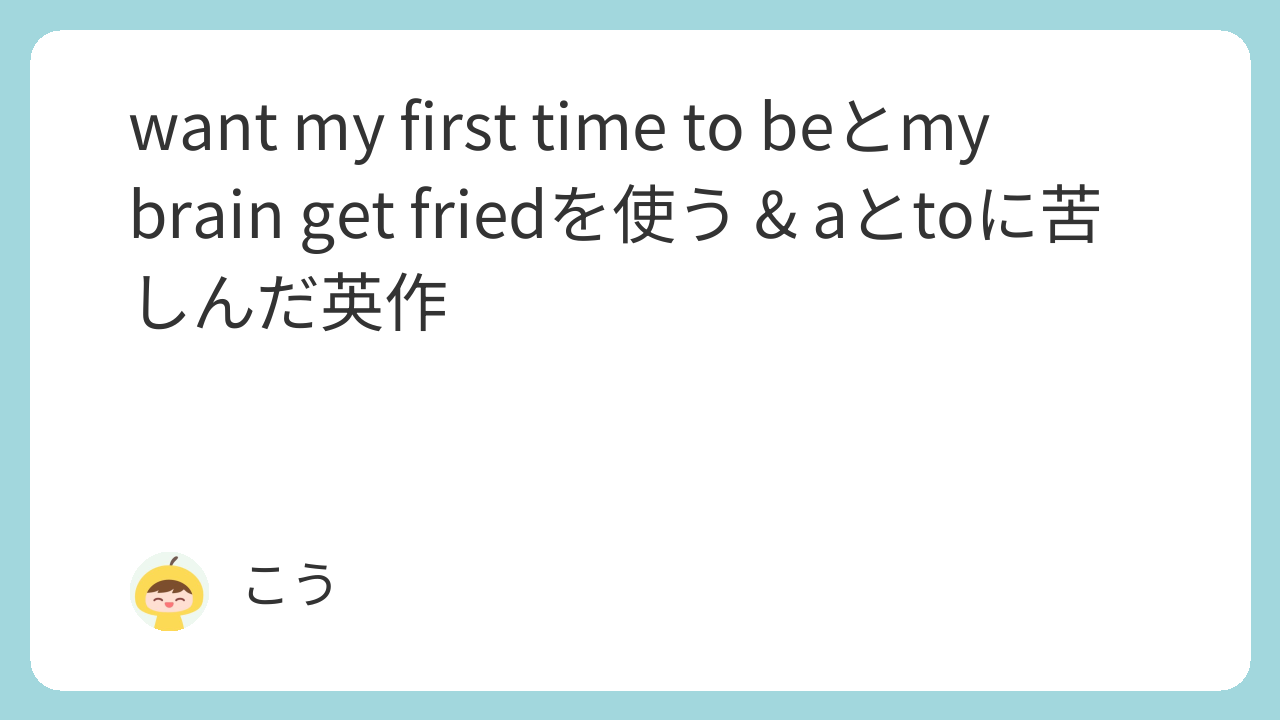 でもwant my first time to …はすごい使えそうだし使いたいなって思った。ので使ってみる。